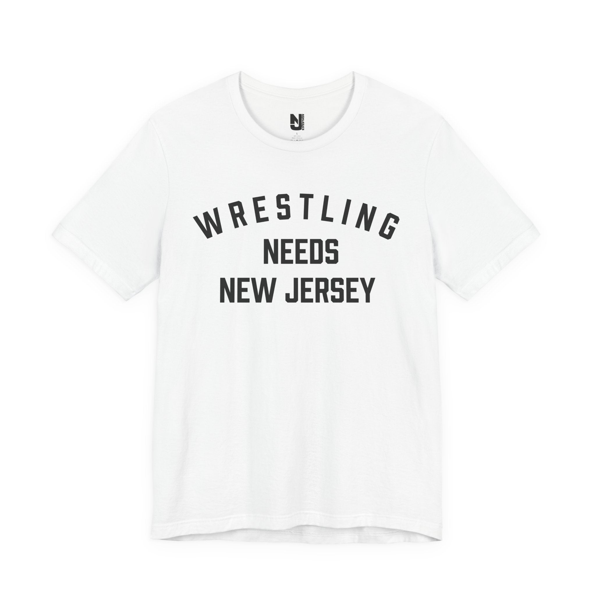 Crafted with high-quality materials, this t-shirt is designed for both comfort and durability. The shirt features a bold statement that's sure to grab the attention of anyone who loves wrestling - "Wrestling Needs New Jersey."